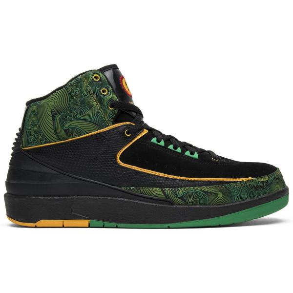 - Men's Jordan 2 Retro Doernbecher Peacock Sneakers in Black/Pro Gold/Lucky Green(318304-071)