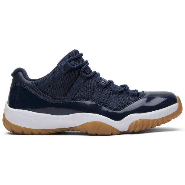 - Men's Jordan 11 Retro Low Sneakers in Midnight Navy Blue/White/Light Gum Brown(528895-405)