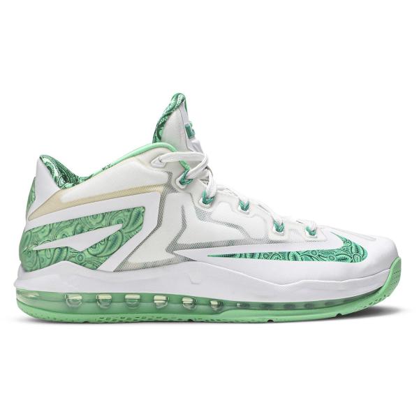 - Men's Nike LeBron 11 Low Easter Sneakers in White/Green Metallic(642849-100)