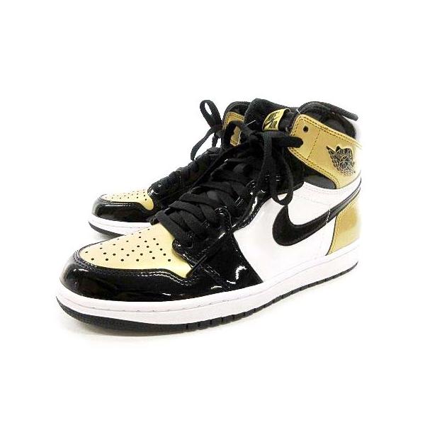 - 未使用 NIKE ナイキ AIR JORDAN 1 RETRO HIGH OG NRG 861428-007 エアジョーダン パテント つま黒金 黒 金 28cm 箱付スニーカー 中古 10001763