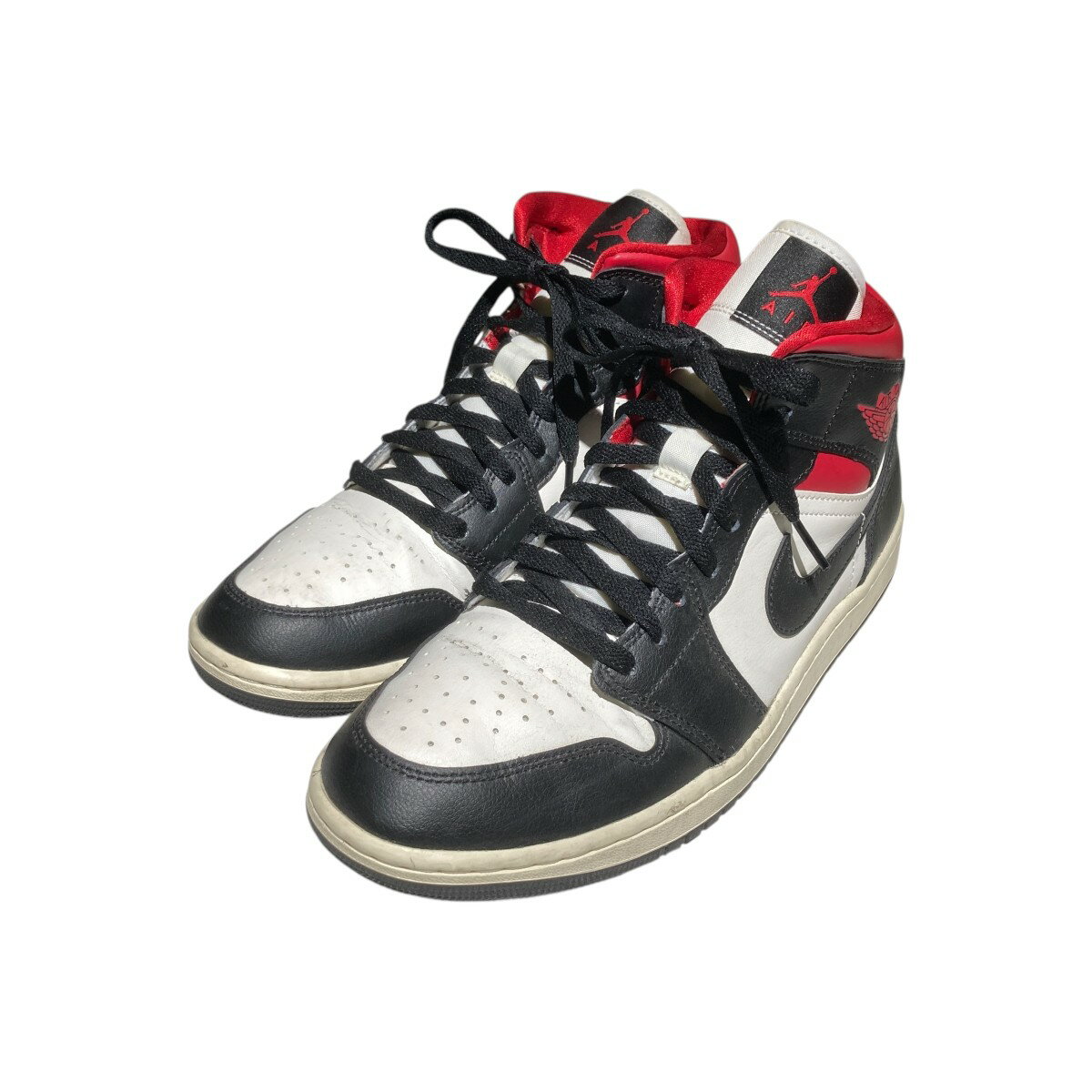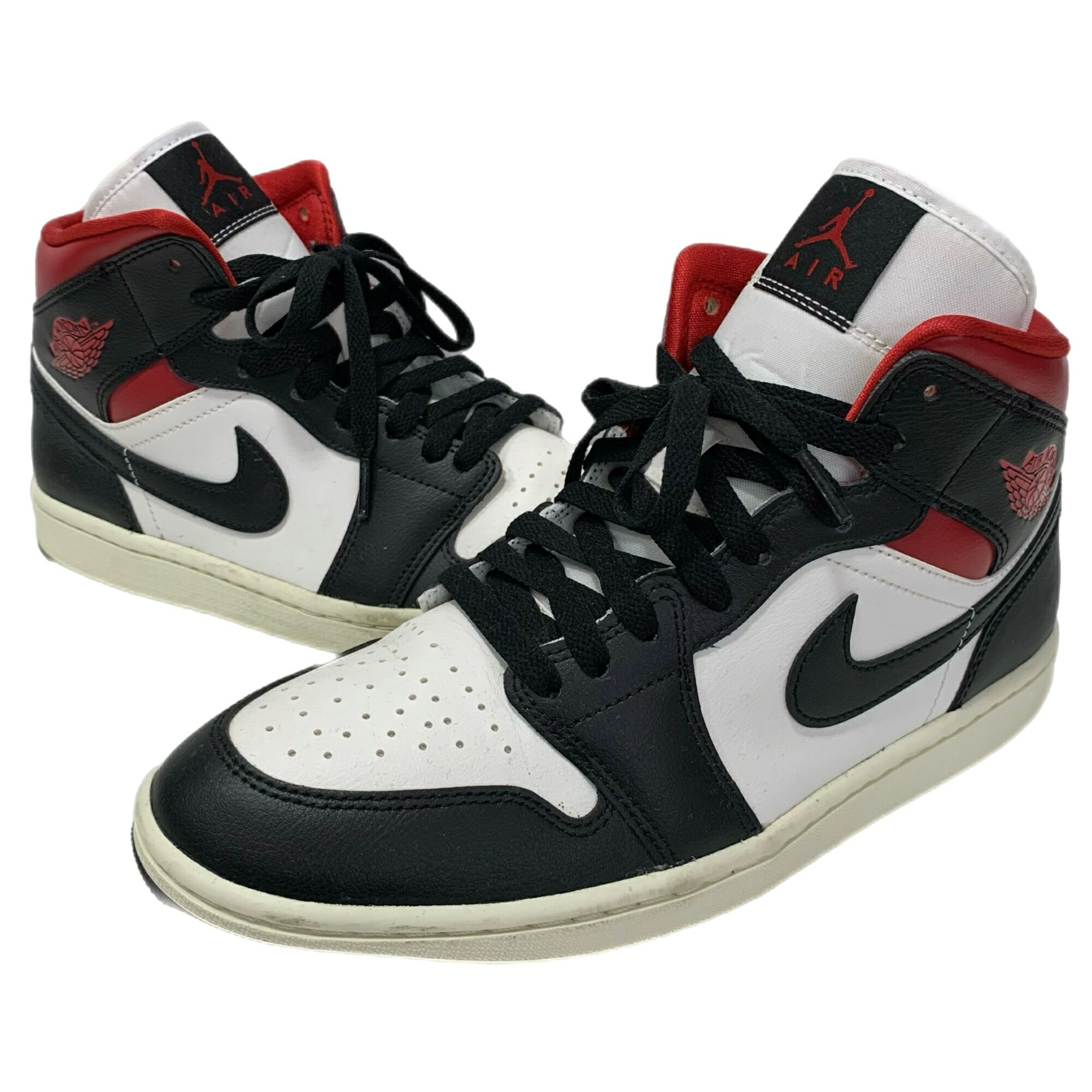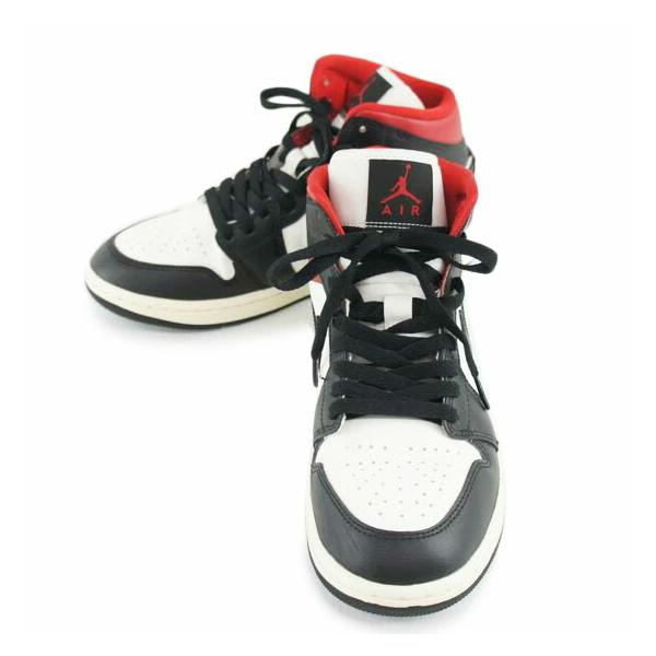 • NIKE WMNS AIR JORDAN 1 MID ナイキ ウィメンズ エアジョーダン1 ミッド BQ6472-061 スニーカー 27cm 白×黒×赤 ホワイト×ブラック×レッド 箱あり 02r13876 中古品