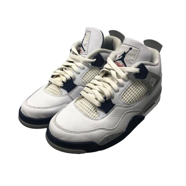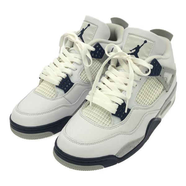- NIKE Air Jordan 4 ハイカットスニーカー DH6927-140 ホワイト×ネイビー サイズ:27.5 (ナイキ)