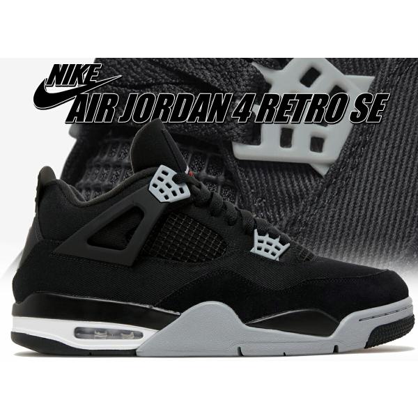 - ナイキ エアジョーダン 4 レトロ SE NIKE AIR JORDAN 4 RETRO SE BLACK CANVAS black/lt steel grey-white dh7138-006 ブラック キャンバス AJIV グレー レッド