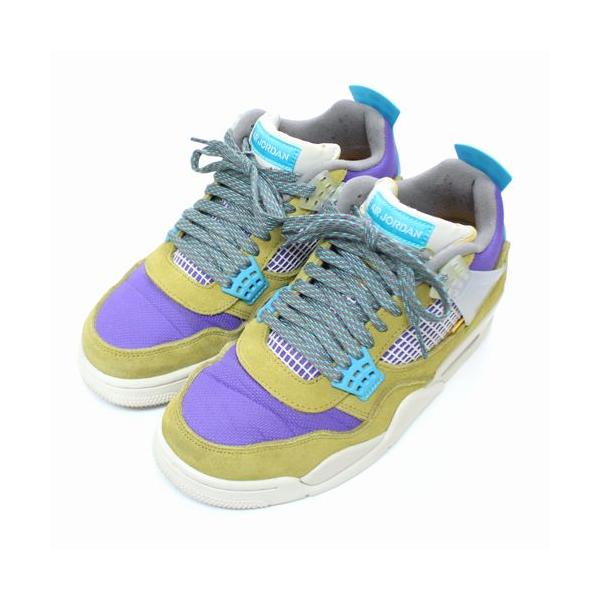 - 良品 NIKE × UNION ナイキ AIR JORDAN 4 RETRO DJ5718-300 DESERT MOSS/TURQUOISE BLUE-DARK IRIS 27.5cm 箱付スニーカー 中古 64001072