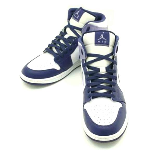 - ナイキ NIKE AIR JORDAN 1 MID ユニバーシティブルー ハイカットスニーカー DQ8426-515 ホワイト×パープル サイズ:28