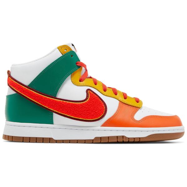 - バスケットシューズ バッシュ スニーカー ダンク ハバネロ ナイキ Nike Dunk high Retro Chenille Swoosh Habanero Red ストリート