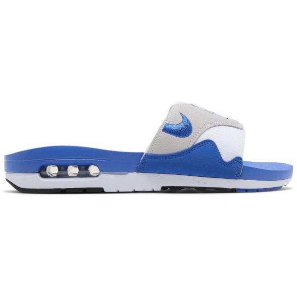 - Men's Nike Air Max 1 Slide Royal Sneakers in White/Black/Light Neutral Grey(FJ4007-100)