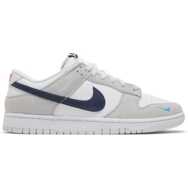 - Men's Nike Dunk Low Aqua Mini Swoosh Sneakers in White/Grey/Navy Blue(FJ4227-001)
