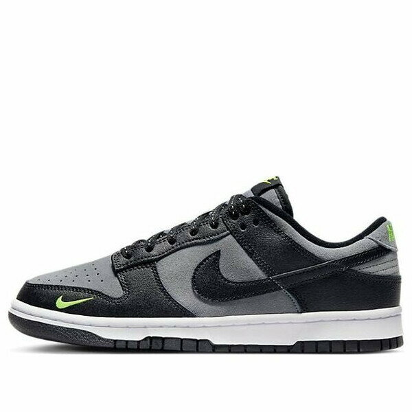 - Men's Nike Dunk Low Black Mini Swoosh Sneakers in Cool Grey/Volt/Reflect Silver(FQ2205-001)