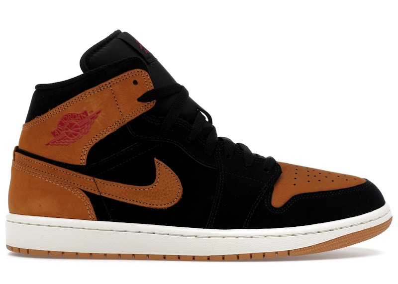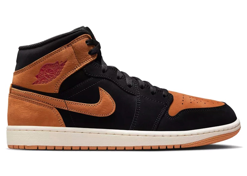- Men's Jordan 1 Mid SE Flax Sneakers in Black/Varsity Red/Sail(HV4091-002)