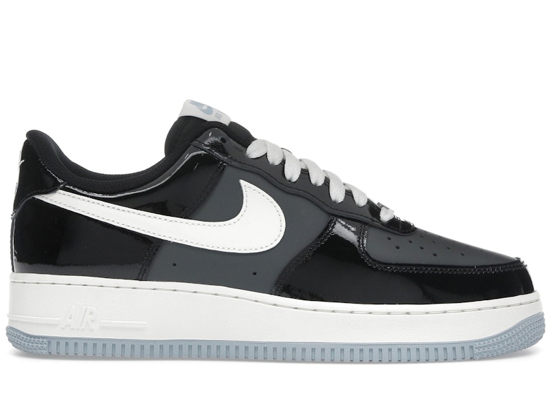 - Men's Nike Air Force 1 Low Patent Sneakers in Black/Armory Blue/Iron Grey(IB7676-001)