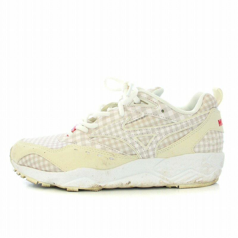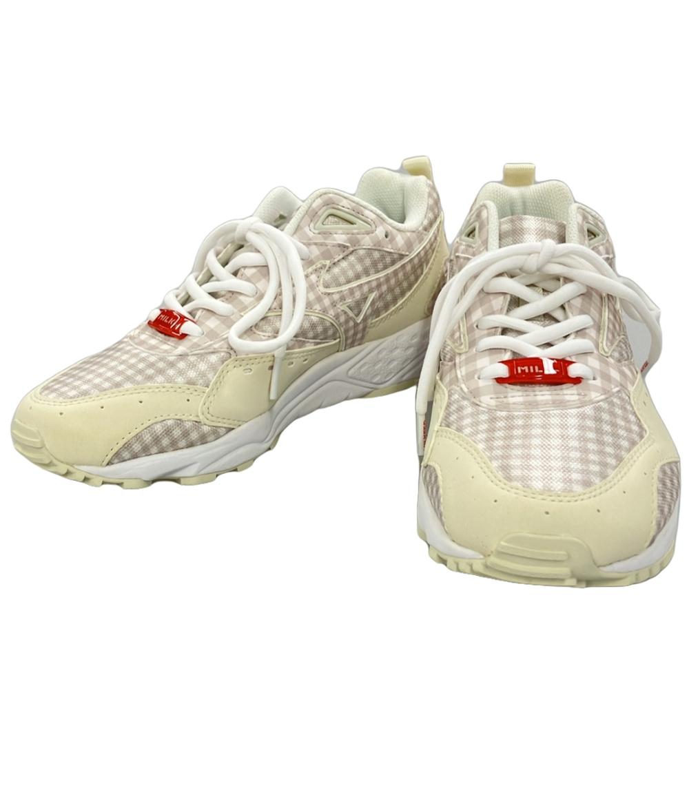 - ミズノ MIZUNO ミルクフェド MILKFED. CONTENDER GINGHAM CHECK スニーカー シューズ ギンガムチェック US6.5 24.5cm ベージュ 白 ホワイト D1GG230401 /TK レディース 240712