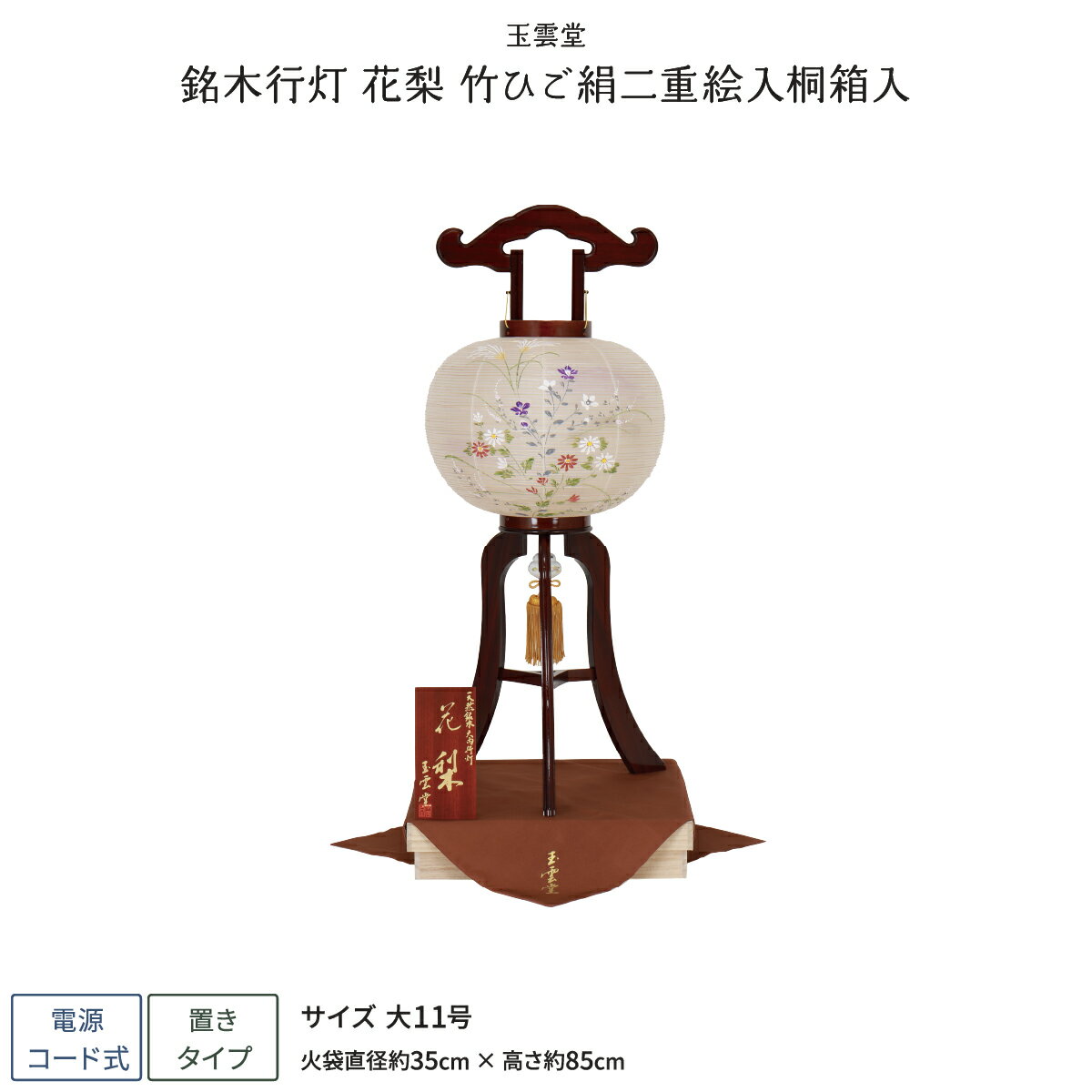 - 盆提灯 新盆 お盆 提灯 銘木行灯 銘木花梨 絹二重絵入 大11号 盆ちょうちん 初盆