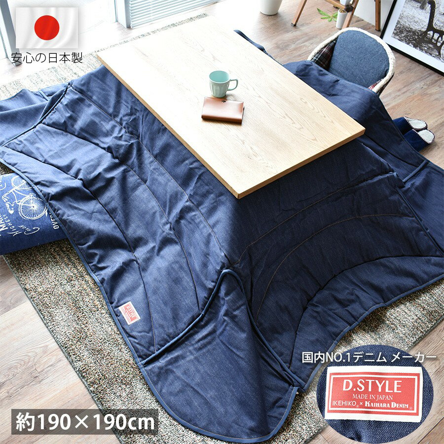 - 高級 こたつ布団 正方形 デニム おしゃれ 省スペース 国産 日本製 薄掛け 190×190cm ネイビー ジーンズ 生地 カイハラデニム 80cm 90cm こたつ対応 新生活