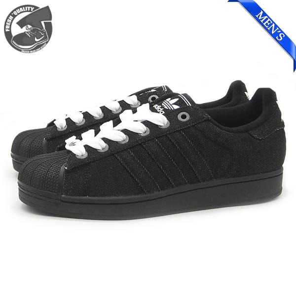 - Men's Adidas Superstar II Black Denim Sneakers in Core Black/Cloud White(JQ3211)
