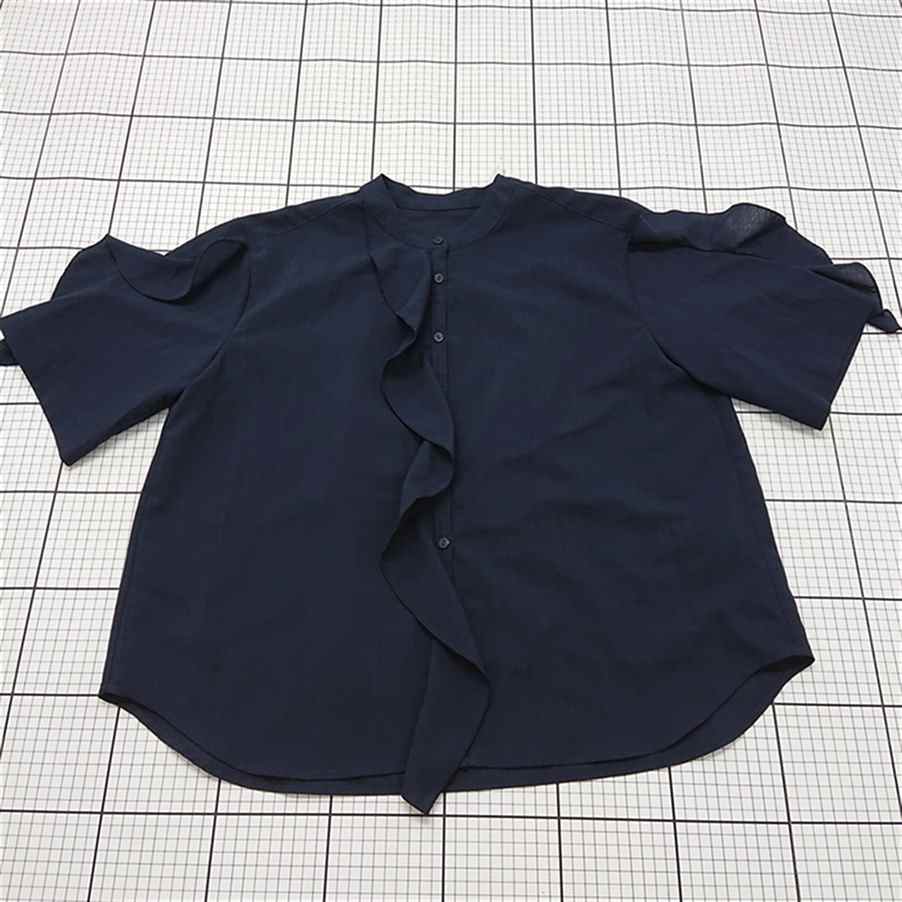- ◇ ⊂ ジーナシス JEANASIS JS064659MC フリルデザインブラウス ネイビー系 レディース F E