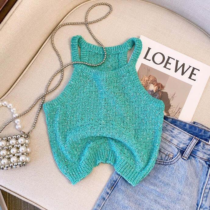 - 4color トップス ホルターネック ノースリーブ サマーニット ベスト カジュアル セクシー