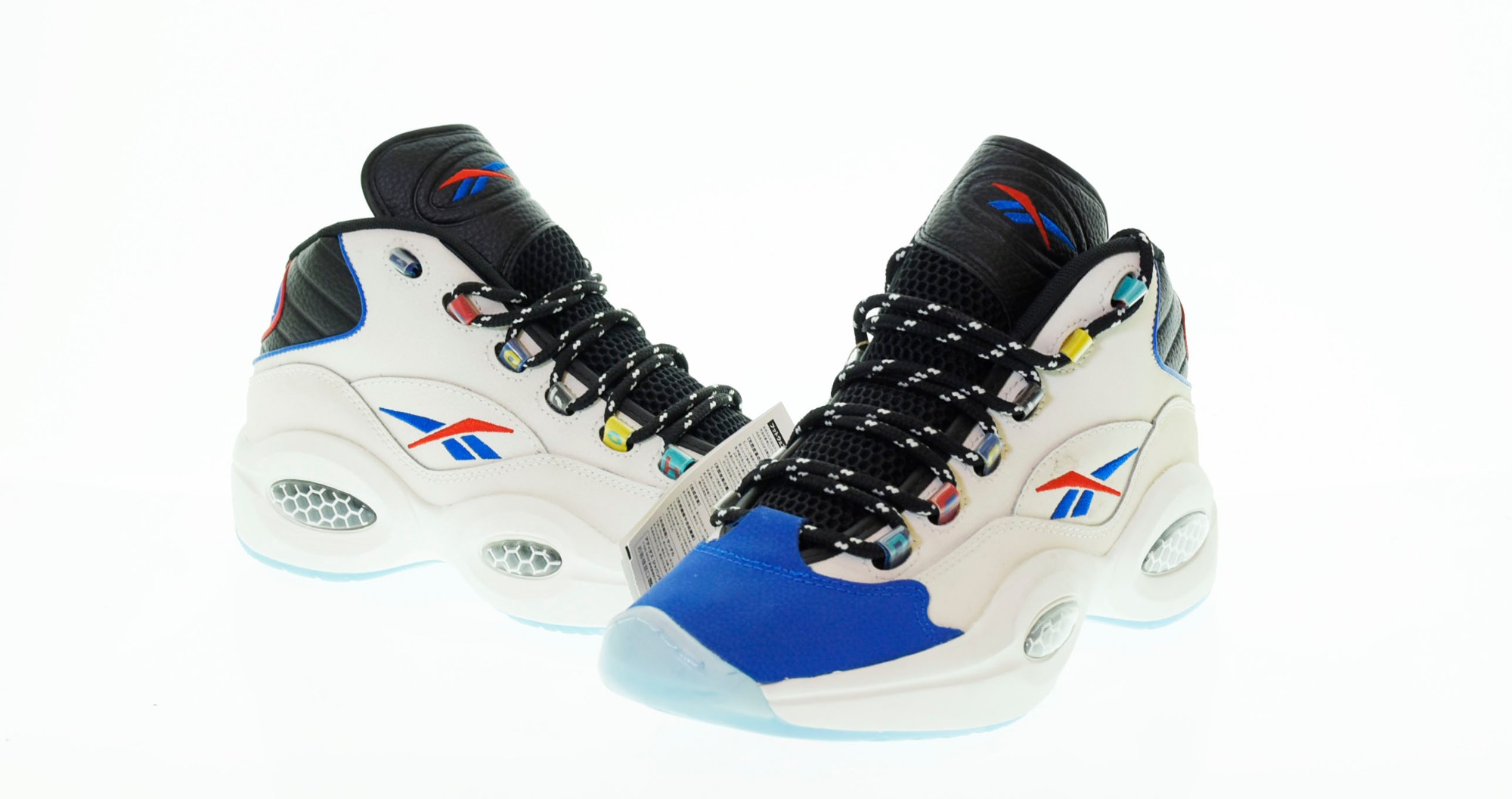 - Men's Reebok Question Mid Answer to No One Sneakers in Chalk/Core Black/Vector Blue(GW8858)