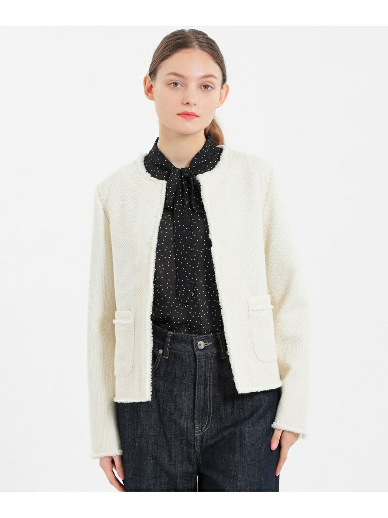 - ニットツイードジャケット MACKINTOSH PHILOSOPHY マッキントッシュ フィロソフィー ジャケット・アウター ノーカラージャケット ホワイト ネイビー[Rakuten Fashion]