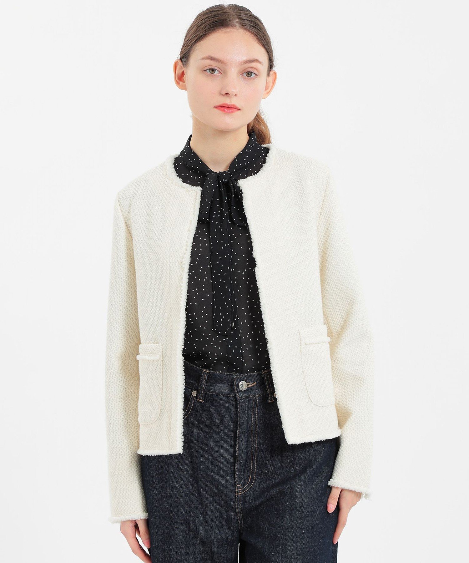 - MACKINTOSH PHILOSOPHY ニットツイードジャケット マッキントッシュ フィロソフィー ジャケット・アウター ノーカラージャケット ホワイト ネイビー