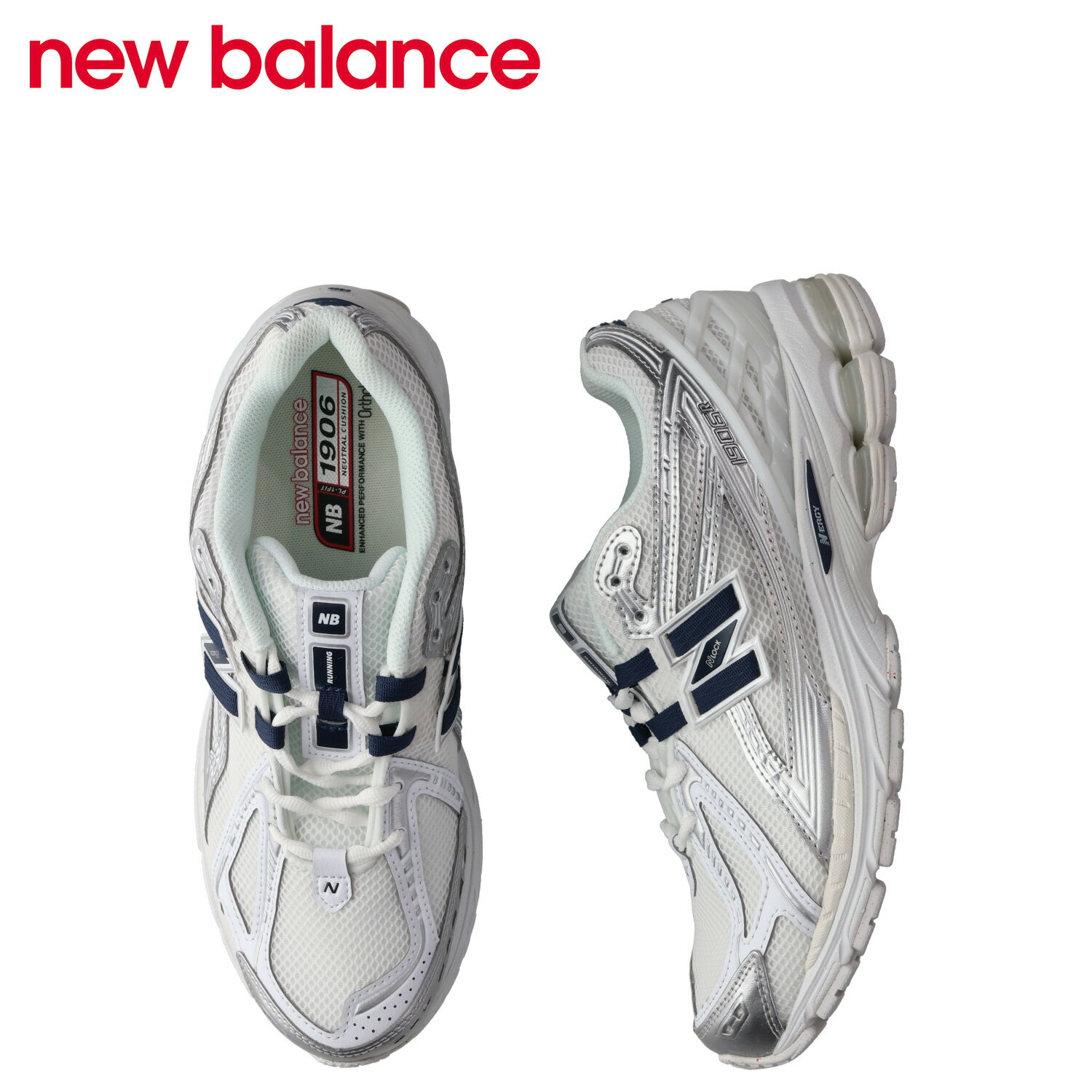 - New Balance 1906R (White With Nb Navy And Silver Metallic) (ニューバランス 1906R)【スニーカー ランニングシューズ クッション性 メッシュアッパー 衝撃吸収 グレー】