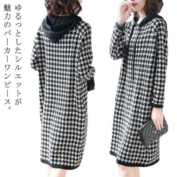 - ワンピース レディース 長袖 春 秋 パーカーワンピース チェック柄 フード付き スウェット ロングパーカー 秋 冬 パーカー ワンピース トレーナー