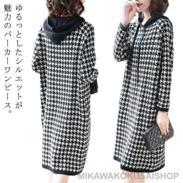 - レディース ワンピース スウェット 秋 冬 パーカーワンピース 長袖 ワンピース 春 ロングパーカー 秋 トレーナー チェック柄 フード付き ワンピー