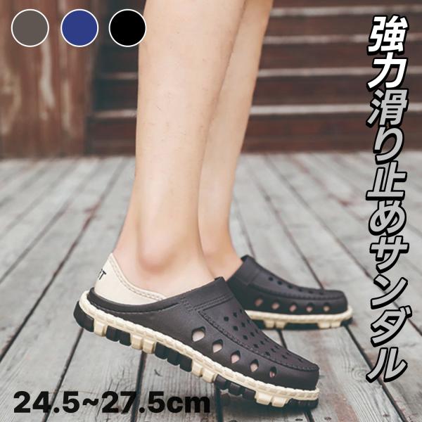 - 強力滑り止め サンダル メンズ 2way 涼しいスリッパ 春夏 室内 ビーチ 職場 クロッグ サボ サンダル 24.5~27.5cm 通気性 滑り止め おしゃれ カジュアル
