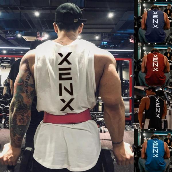 - 夏 カジュアル 筋トレ メンズ フィットネス タンク ゆったり コットン ジム ドッキング トレーニングウェア 吸汗 速乾 ノースリーブ