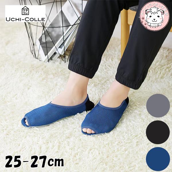 - グンゼ ウチコレ スリッポン つま先オープン 防水加工 25-27cm | 洗える 軽量 メッシュ メンズ ポリエステル ルームシューズ スリッパ AUX212 GUNZE UCHI-COLLE