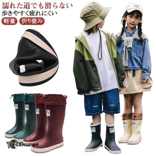 - 長靴 レディース レインブーツ メンズ キッズ 子供 ジュニア ロング丈 雨靴 レインシューズ 完全防水 滑りにくい ゴムひも付き おしゃれ かわいい