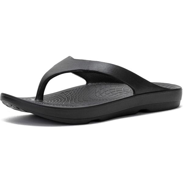 - スリッパ サンダル 鼻緒 ビーチサンダル リカバリー 衝撃吸収 男女兼用(ブラック, 23.5〜25.0 cm)