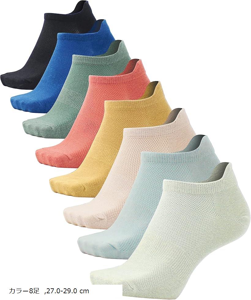 - 靴下 メンズ くるぶし 夏用 薄い 大きいサイズ スニーカーソックス メッシュ 脱げない 8足セット 黒8足 25.0-27.0 cm 4色8足 カラー8足 27.0-29.0 cm