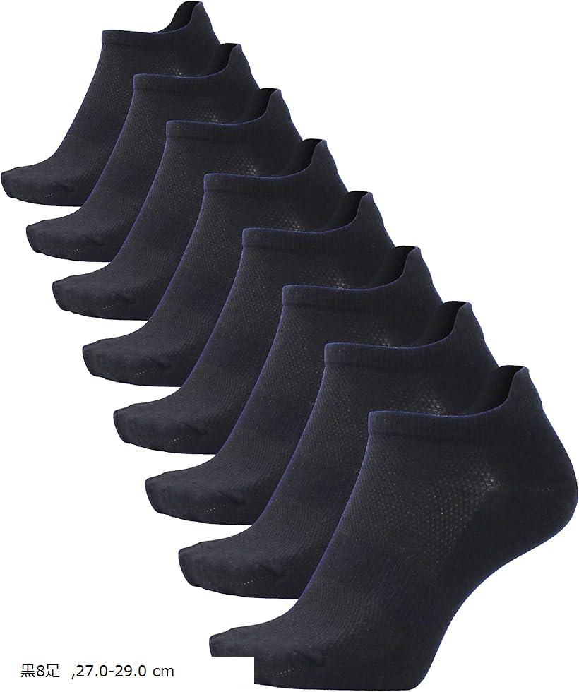 - 靴下 メンズ くるぶし 夏用 薄い 大きいサイズ スニーカーソックス メッシュ 脱げない 8足セット (黒8足, 27.0-29.0 cm)