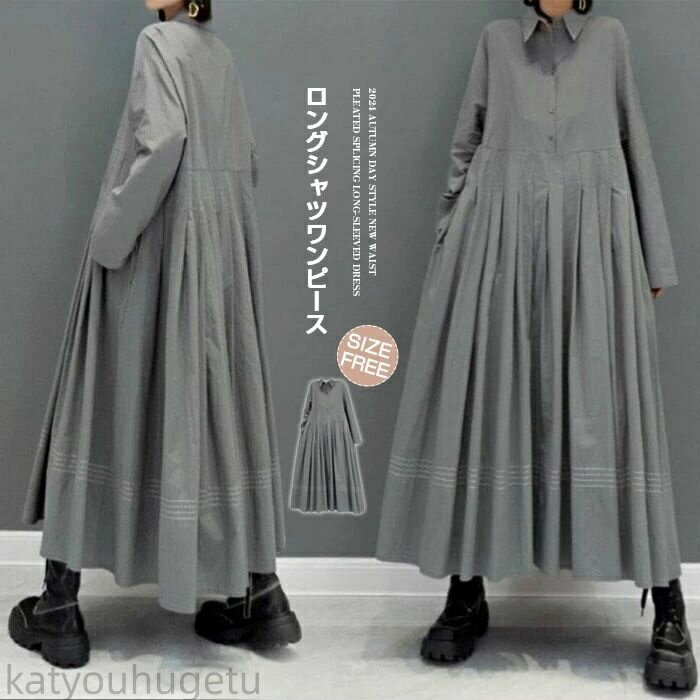 - シャツワンピース きれいめ ロングワンピース ワンピース コットン 大きいサイズ レディース 長袖 マキシ丈 マキシワンピース ビッグシルエット ゆるっと 着?せ 通勤 おしゃれ 柔らか コーデ 大人 カジュアル ゆったり 可愛い 春夏秋
