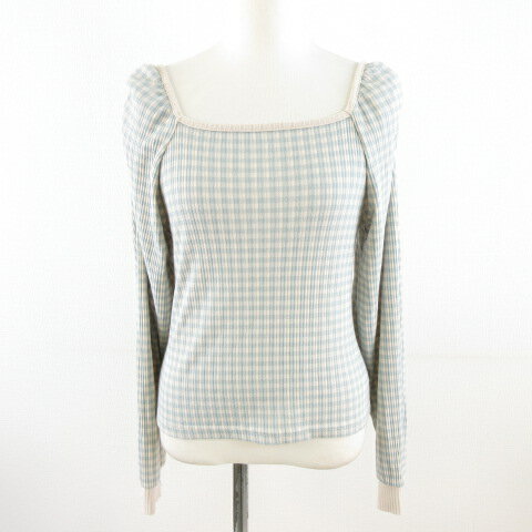 - ゴージ GORGE カットソー 長袖 チェック ストレッチ 水色 オフホワイト F *A460 レディース 231213