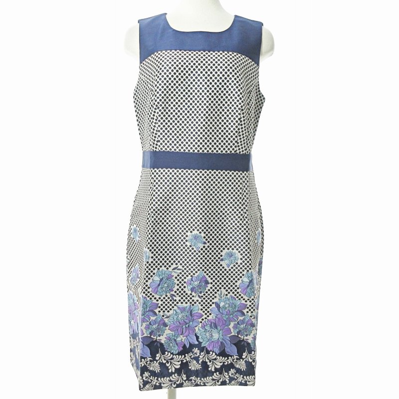 - 未使用品 ルネデリ Derhy タグ付き ワンピース ノースリーブ 膝丈 ドット 花柄 ネイビー 紺 M 0625 レディース 240626
