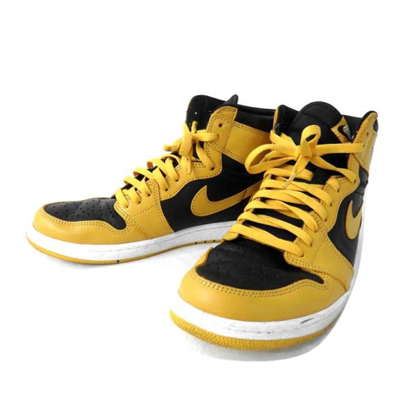- 【中古】NIKE エアジョーダン1 レトロハイ ポレン メンズ スニーカー 555088-701 イエロー ブラック 表記サイズ:27.0cm [jgg]