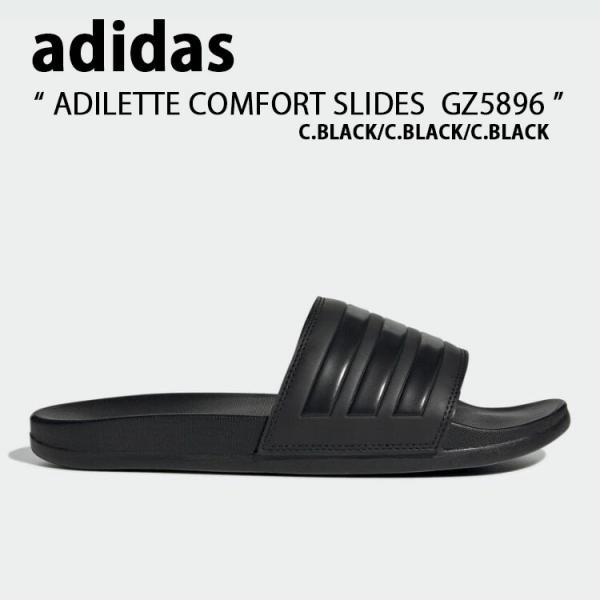 - adidas アディダス サンダル スリッパ ADILETTE COMFORT SLIDES GZ5896 アディレッタ コンフォート サンダル CORE BLACK スライドサンダル シャワーサンダル