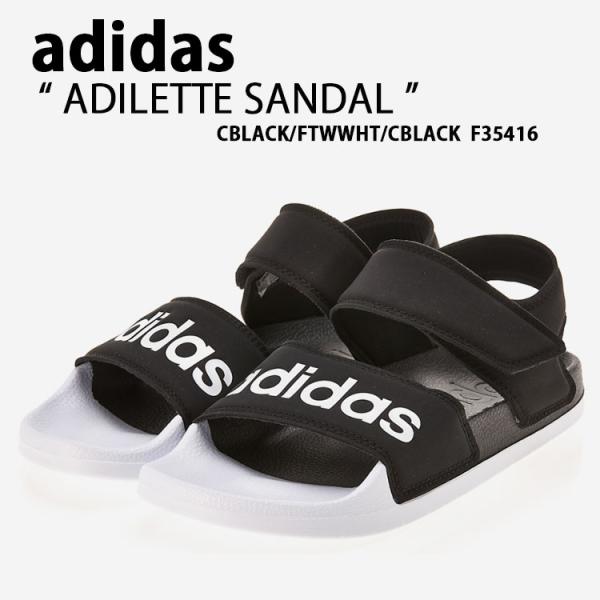 - adidas アディダス サンダル スポーツサンダル ADILETTE SANDAL アディレッタ BLACK WHITE F35416 サイズ調整 ロゴ スポサン ストラップ ヒールストラップ