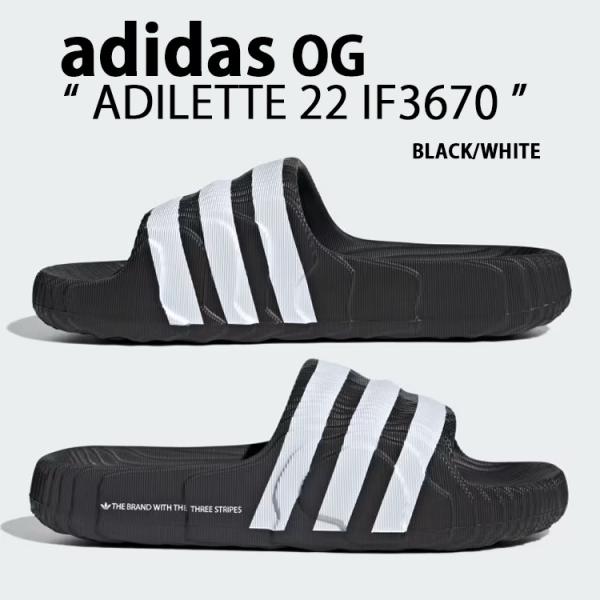 - adidas originals アディダス サンダル ADILETTE 22 SLIDE SANDAL BLACK WHITE ストライプ IF3670 アディレッタ スライドサンダル 一体型 ブラック ホワイト