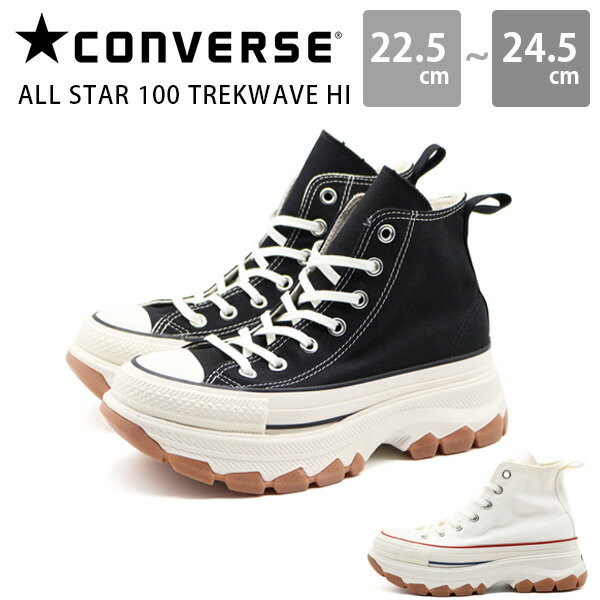 - コンバース スニーカー レディース 靴 ハイカット 厚底 黒 ブラック 白 ホワイト 撥水キャンバス 雨 消臭抗菌 韓国ファッション REACT リアクトインソール CONVERSE ALLSTAR 100 TREKWAVE HI オールスター トレックウエーブ HI