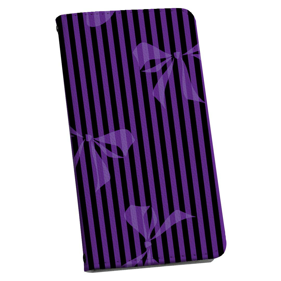 - シンプルスマホ5 専用 ケース カバー A001SH 専用 ケース カバー 手帳型 マグネット式 ピタッと閉まる レザーケース カード収納 ポケット igcase 008476 紫 リボン ストライプ パープル