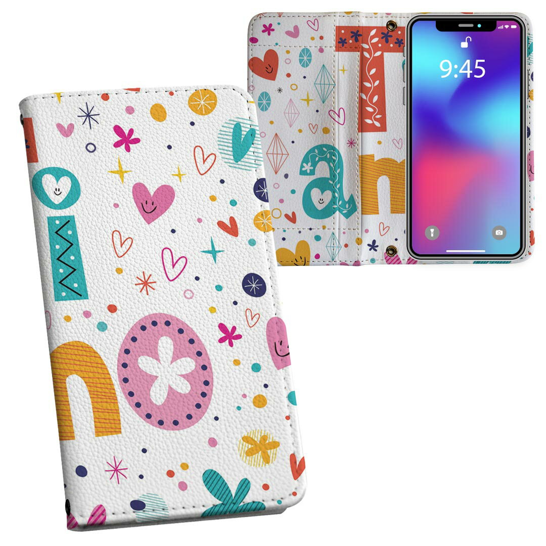 - 401SH simple-sumaho2 シンプルスマホ2 softbank ソフトバンク カバー 手帳型 カバー レザー ケース 手帳タイプ フリップ ダイアリー 二つ折り 革 カラフル ハート 花 フラワー 文字 ラブリー 008478