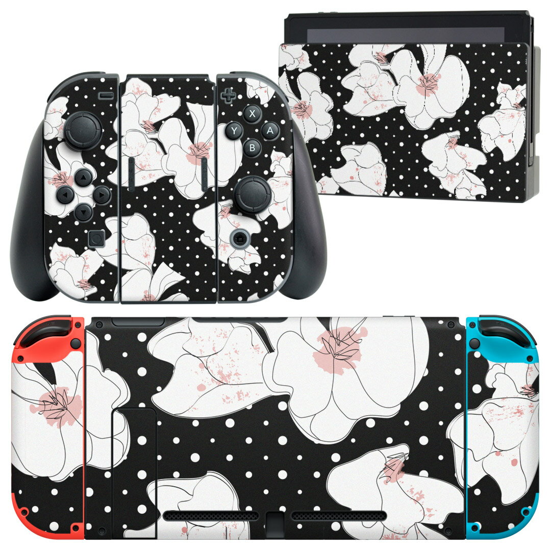 - igsticker Nintendo Switch 用 デザインスキンシール 任天堂 ニンテンドー スイッチ 専用 本体ドック Joy-Con Joycon ジョイコン 専用 ゲーム機 カバー アクセサリー フィルム ステッカー 008470 花 黒 ブラック 模様