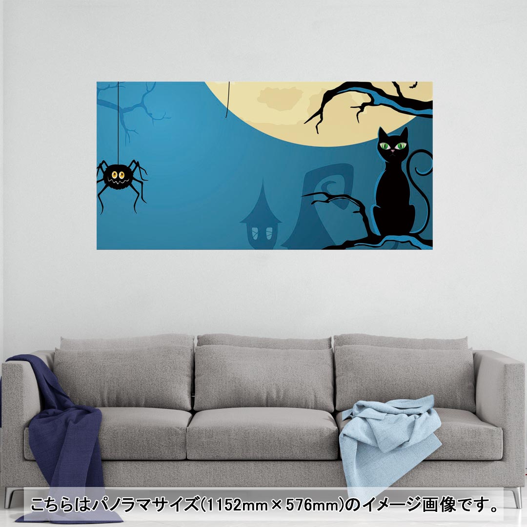 - ポスター ウォールステッカー ポステッカー パノラマサイズ ポスターステッカー シール式ステッカー 飾り 1152mm×576mm 写真 フォト 壁 インテリア おしゃれ 剥がせる wall sticker poster 000061 ハロウィン 夜 猫 クモ