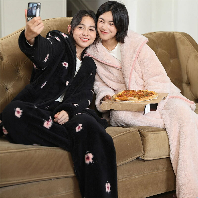 - パジャマ レディース ルームウェア もこもこ あったか 厚手 防寒 セットアップ 柔らかい 秋冬 編み上げ 折り襟 コンフォート 前開き 女性用 かわいい 上下セット ふわふわ 部屋着 冬 長袖 モコモコ 暖かい 大きいサイズ 着る毛布 ボア寝巻き フランネル