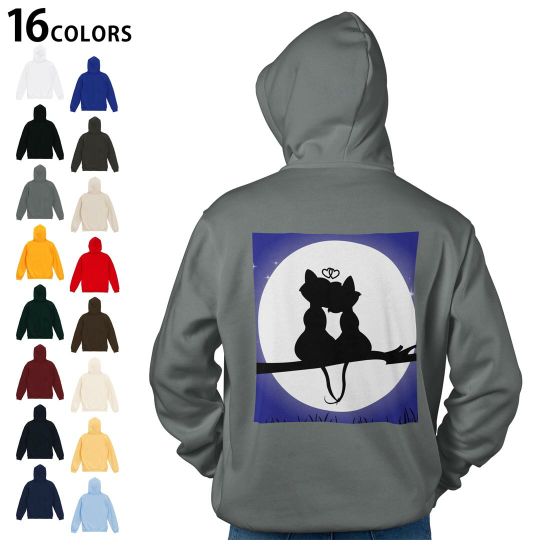 - 選べる16カラープルオーバー パーカー バックプリント フーディ メンズ レディース ユニセックス 長袖 デザイン S M L XL 2XL hoodie 000055 猫 月 かわいい