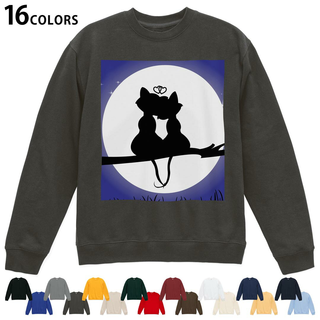 - 選べる16カラートレーナー メンズ レディース ユニセックス 長袖 デザイン S M L XL 2XL sweatshirt trainer スウェット 000055 猫 月 かわいい