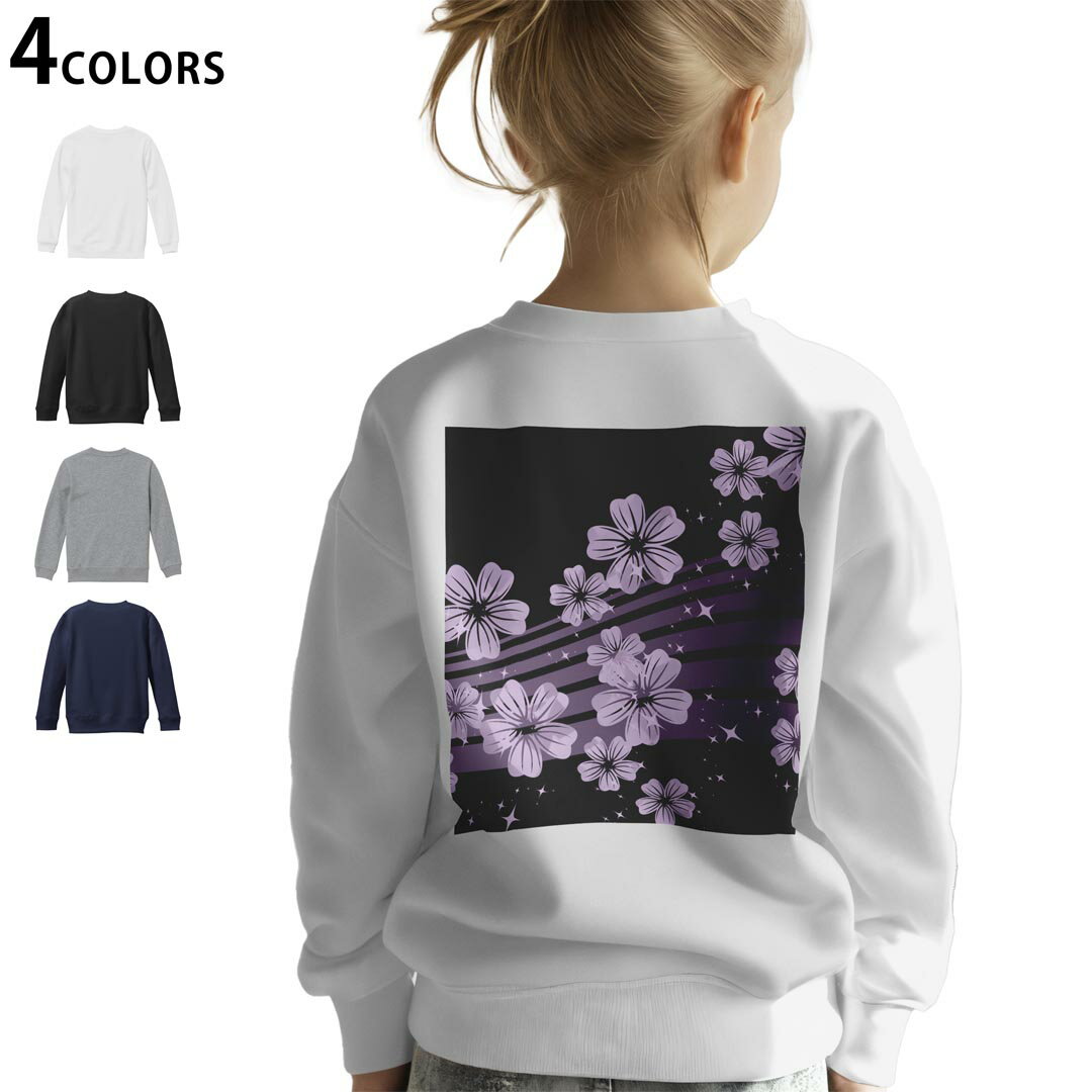 - 選べる5カラー スウェット トレーナー キッズ 男女兼用 男の子 女の子 ユニセックス unisex 長袖 デザイン リブ ホワイト ブラック 白 黒 グレー ネイビー ベージュ 110 130 150 trainer sweat 000051 黒 和柄 桜